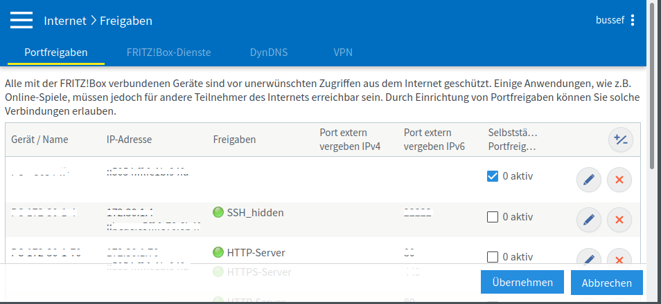 FrankBusse wrote: Mon 15. Feb 2021, 22:55 Anschließend wird im Menü "Mein Account > Universelle Portmapper" für die gewählten Ports 443 und 80 je ein IPv4-Mapping angezeigt - unter beiden bekomme ich keine Verbindung.